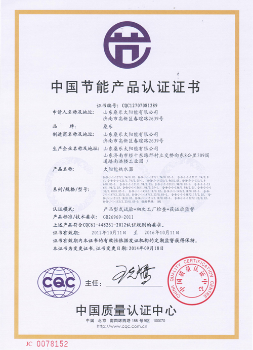 桑樂榮獲太陽能熱水系統(tǒng)中國綠色產(chǎn)品認(rèn)證證書