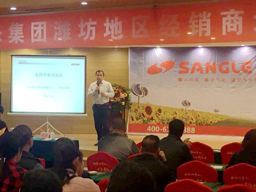 日前,桑樂山東濰坊地區(qū)經(jīng)銷商培訓(xùn)動(dòng)員大會(huì)在濰坊圣基大酒店順利舉行,桑樂集團(tuán)公司副總馮磊、光伏事業(yè)部經(jīng)理?xiàng)罟鸺t蒞臨了本次會(huì)議,并做了重要講話和培訓(xùn)。