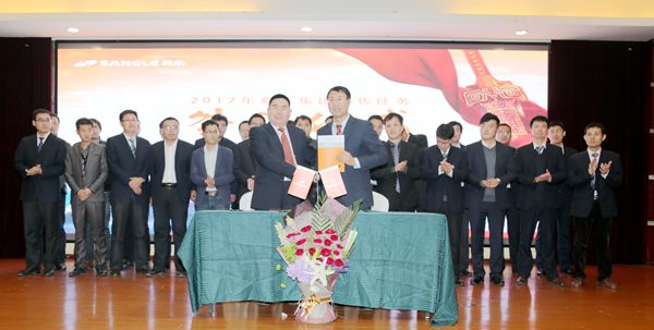 沖鋒的號角已經(jīng)吹響,桑樂集團2017年銷售任務(wù)簽約儀式已經(jīng)開始,董事長和執(zhí)行總經(jīng)理簽署了2017年度銷售任務(wù),各分公司、辦事處也分別簽訂了年度銷售任務(wù)。“扎硬營,打勝仗”,新的一年,充滿陽光和希望,桑樂將迎來更大的輝煌。
