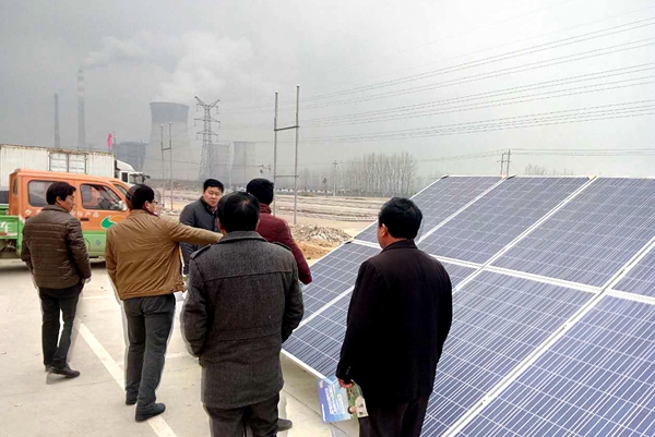 會議前期的宣傳工作至關(guān)重要,先確定了參與活動的鄉(xiāng)鎮(zhèn)及意向客戶,對客戶初步講解光伏政策,光伏收益等提高客戶的興趣,經(jīng)銷商與意向客戶多次參觀桑樂光伏電站發(fā)電設備樣板,對桑樂電站達成初步意向。
