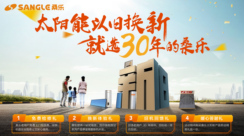 2018年新春伊始,桑樂(lè)集團(tuán)便緊抓這一黃金時(shí)段,緊鑼密鼓地布局新一輪的市場(chǎng)攻勢(shì);在集團(tuán)王董事長(zhǎng)“太陽(yáng)能以舊換新,就選30年的桑樂(lè)”的號(hào)召下,在集團(tuán)各區(qū)域分公司的鼎力配合下,目前桑樂(lè)太陽(yáng)能“以舊換新“活動(dòng)在全國(guó)范圍內(nèi)火熱進(jìn)行中……
